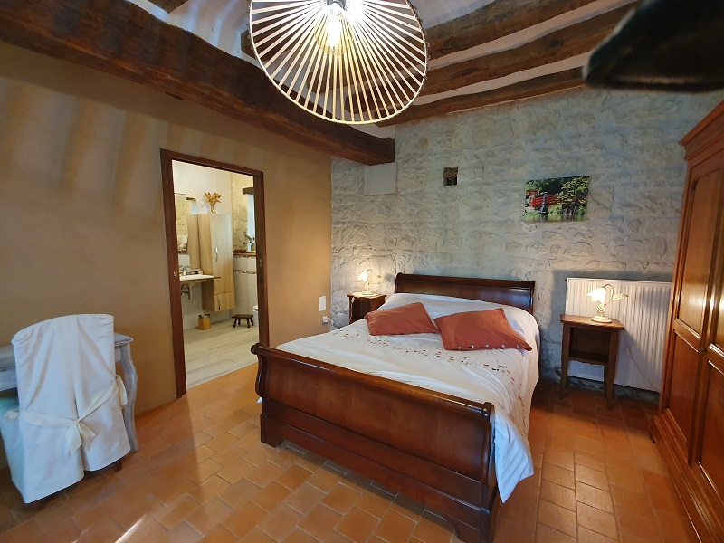 Située au rez-de-chaussée à l’extrémité de la maison, la chambre d’hôtes possède son entrée privative.